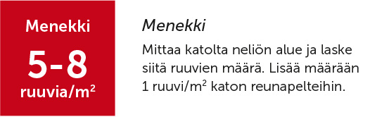 KINGI® kateruuvi on tarkoitettu katto- ja seinäpeltien kiinnittämiseen profiilin pohjalta. Samaa ruuvia käytetään peltien limiliitoksissa sekä listojen kiinnittämisessä. KINGI® kateruuvin kiinnitysalustaksi soveltuu puu tai -teräsruode. Maksimiläpäisykyky teräkseen on 0,7 mm + 0,7 mm. Tälle 32 mm pitkälle kateruuville puuruoteen paksuus tulee olla vähintään 32 mm.